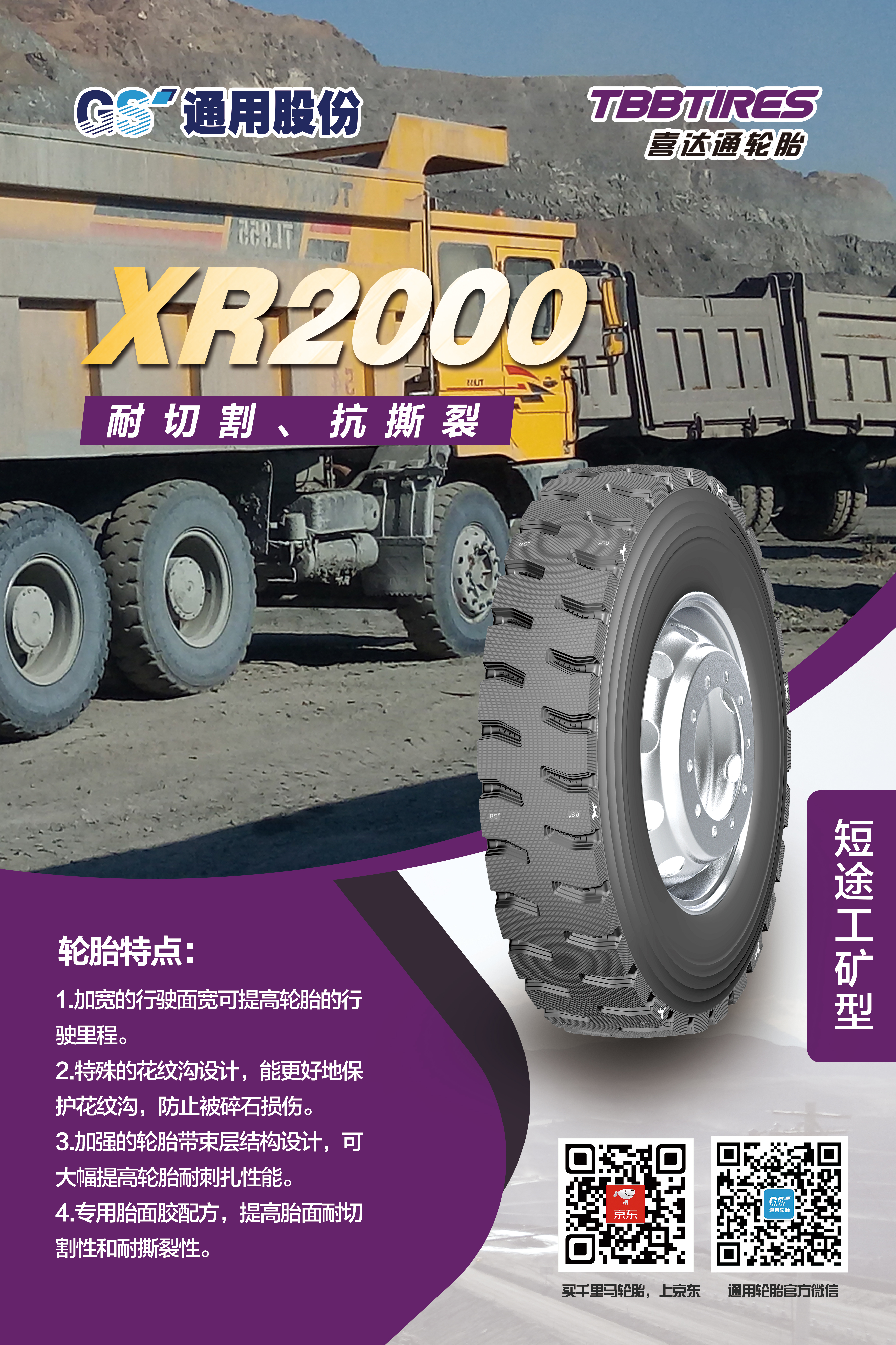 眾所周知,自2007年自主研發(fā)的第一代短途礦山胎問世,通用股份在行業(yè)率先開創(chuàng)了礦山胎這一品類,充分滿足礦區(qū)特殊使用條件和特點(diǎn),備受中國(guó)礦山車司機(jī)的喜愛。近年來,通用股份立足國(guó)內(nèi)礦區(qū)路況特點(diǎn),對(duì)輪胎花紋、配方、結(jié)構(gòu)等進(jìn)一步升級(jí),重磅推出礦山胎傳承之作——XR1000、XR2000。兩款輪胎均擁有全新的外觀設(shè)計(jì)、獨(dú)特的結(jié)構(gòu)設(shè)計(jì)、高耐磨配方設(shè)計(jì)。全新胎面配方的應(yīng)用,大幅提升胎面耐刺扎性能。加強(qiáng)的輪胎帶束層結(jié)構(gòu)設(shè)計(jì),大幅提高輪胎耐扎刺性能。加寬的行駛面,有效提高輪胎行駛里程。相關(guān)數(shù)據(jù)表明,相比同類產(chǎn)品,耐久時(shí)數(shù)提升20%,胎圈耐久提升30%,是廣大礦山胎用戶的信心之選。