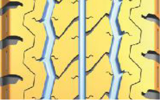 ·胎面接地面積較大。花紋塊之間具有加強筋設計,輪胎磨損更加均勻,使用壽命更長。
